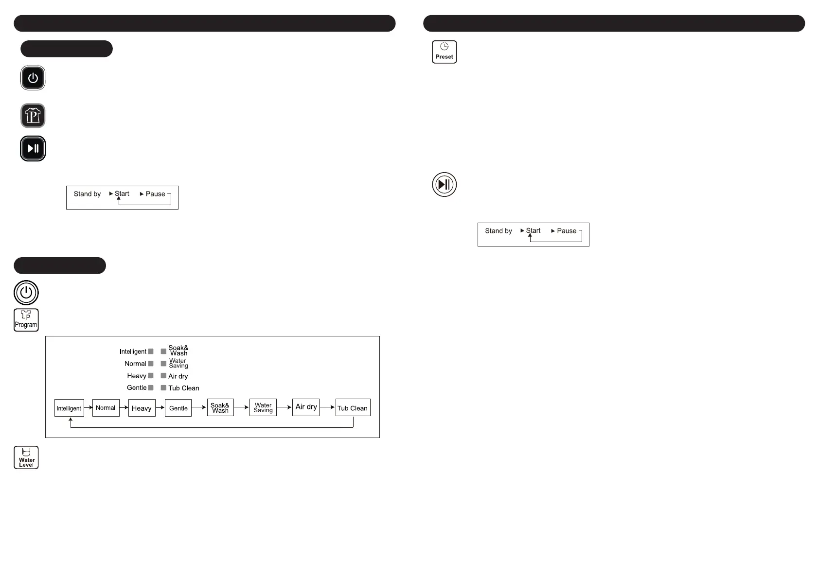 • 设置程序后,可以按“洗涤”,“漂洗”,“脱水”,“水位”或“预设”按钮设置洗涤时