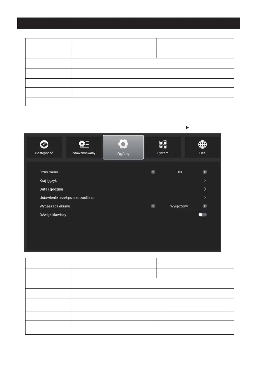 Interfejs ustawień kraju stacji zwrotnej i języka OSD