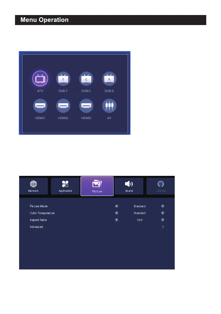 Press [MENU] button to open the main menu interface.Press [◄ / ►] button to select the option