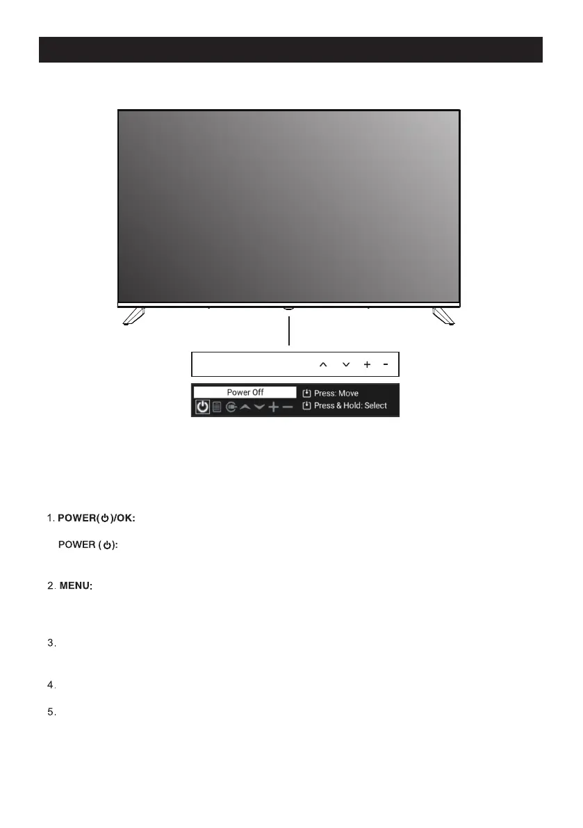 W trybie wyłączenia naciśnij krótko, aby włączyć telewizor. w trybie włączenia