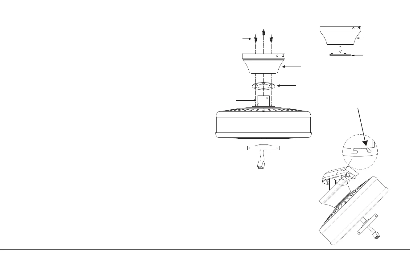 Step 7. Hang the fan on the hook of the hanger bracket.