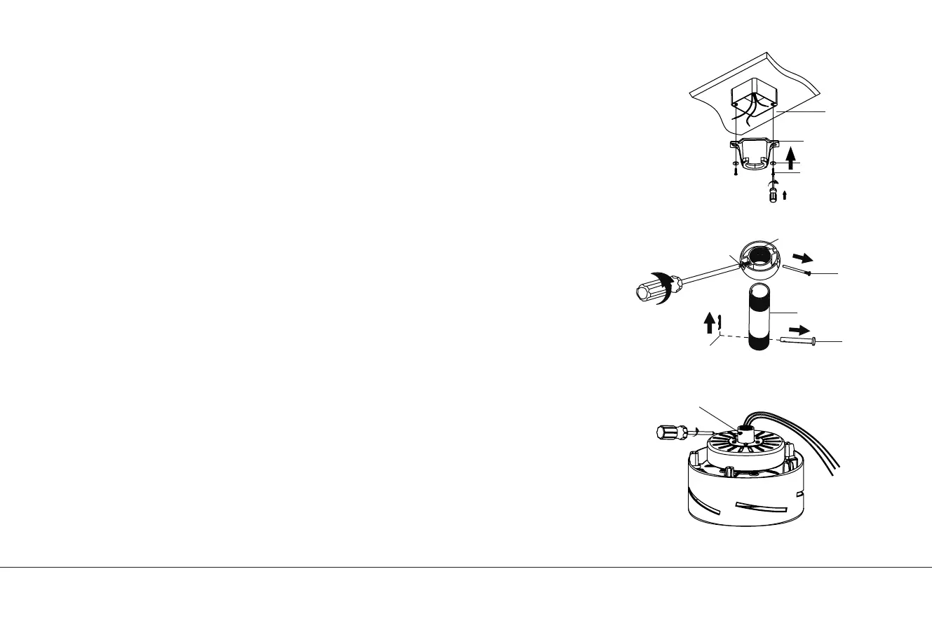 plafond structurel (un boîtier desserré fera vaciller le ventilateur). Faites passer les fils