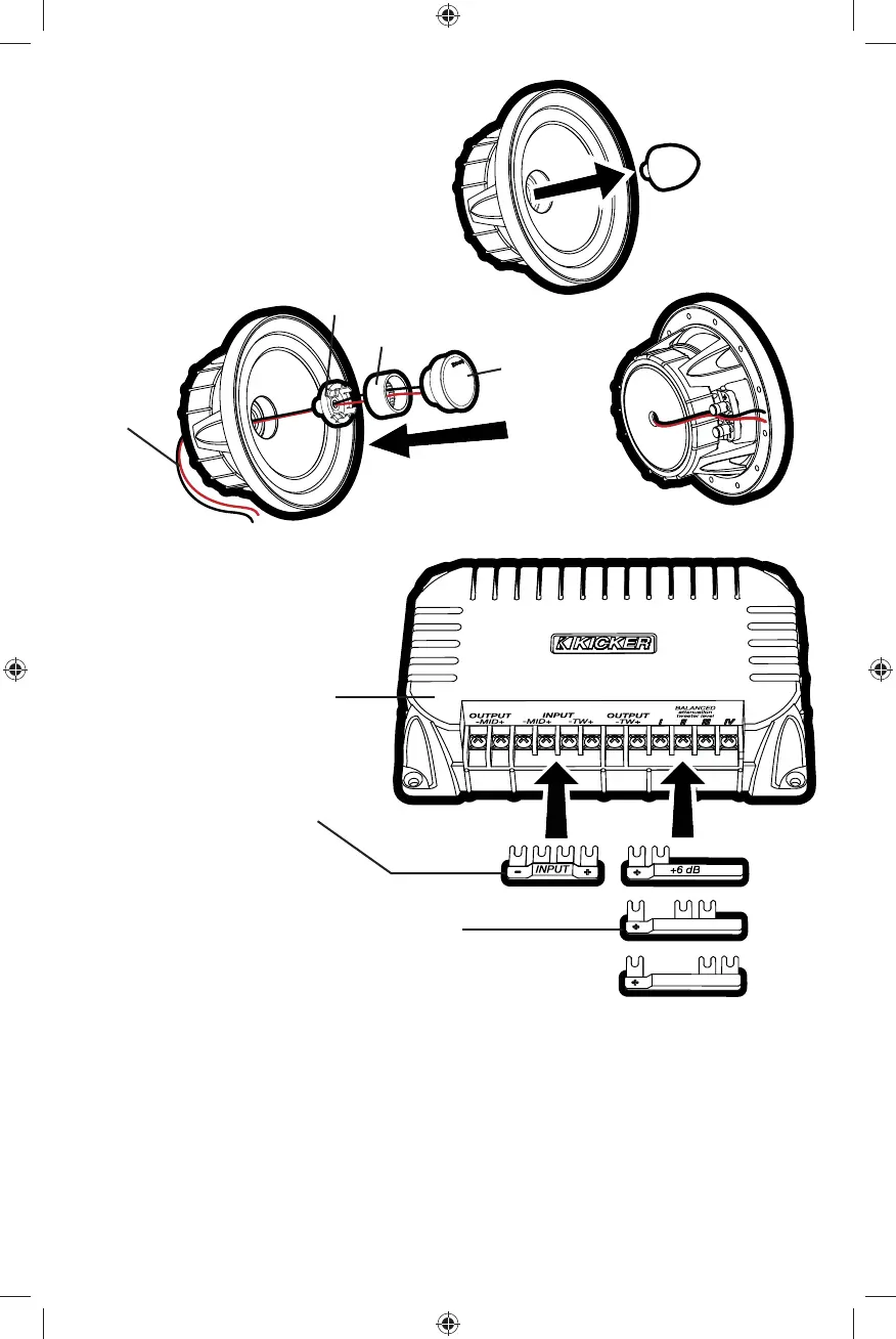 4 Verstärkerkanäle). Verwenden Sie eine der beigefügten Hochtöner-Ausgangspegelbrücken