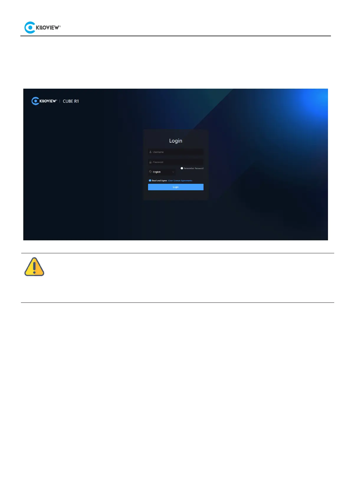 Visit CUBE R1's web UI with your browser to log in to CUBE R1. The default username and password for