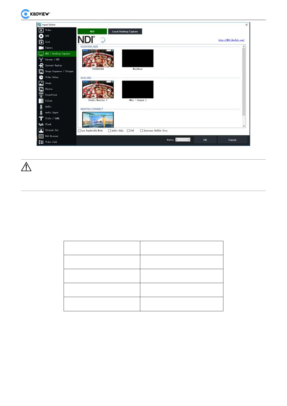 Full NDI encoding transmission requires high bit rate, the device needs to be connected to a Gigabit