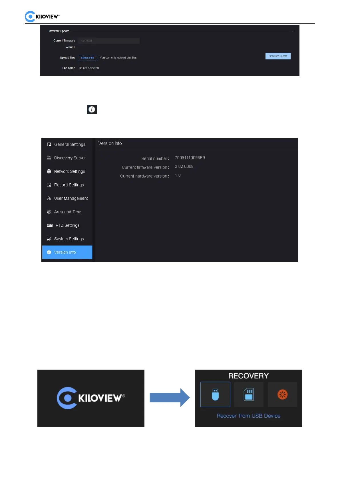 the Kiloview logo to appear on the screen, long press and hold the scroll wheel for more than 10s until