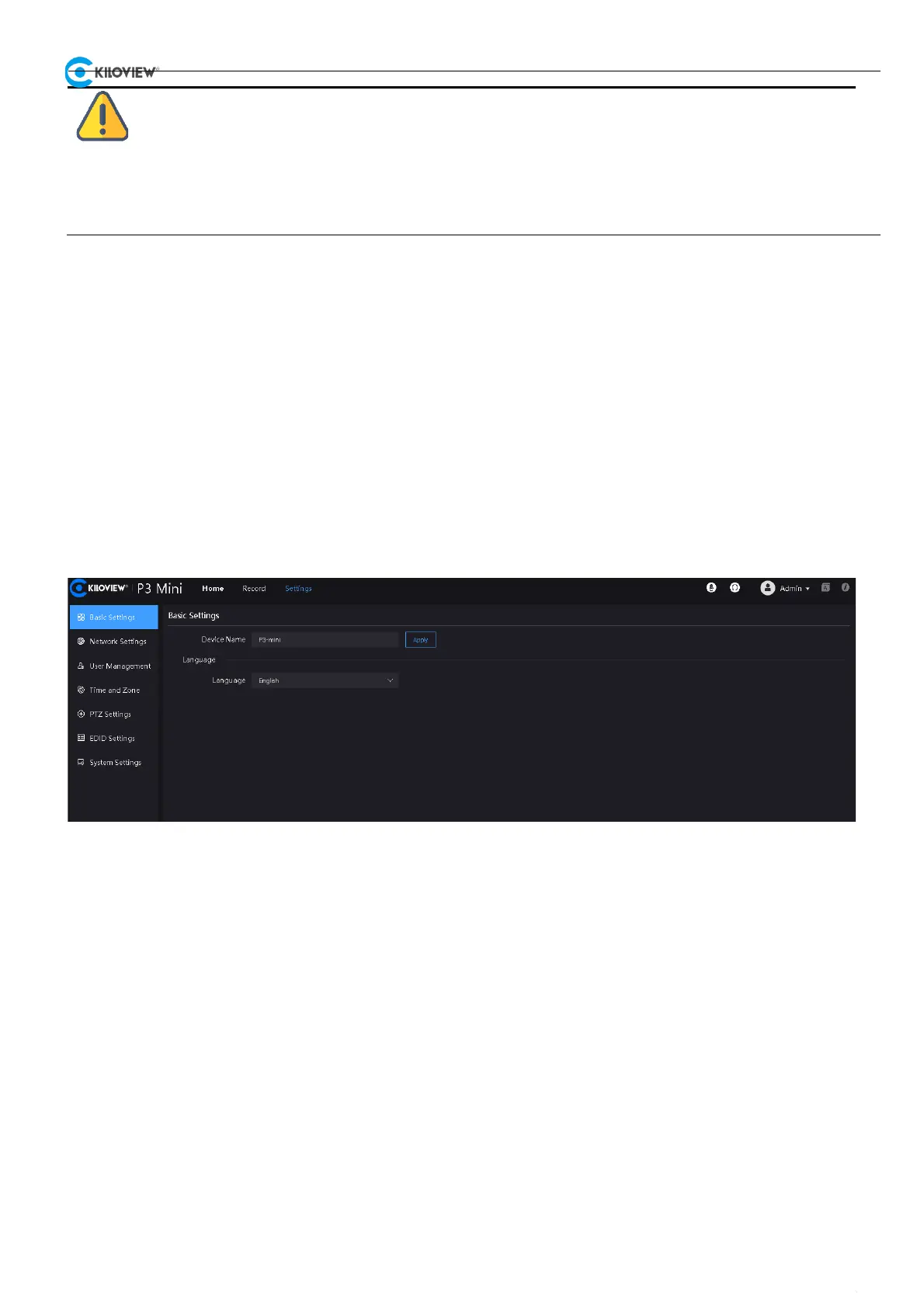 Click on the top navigation bar "Settings" -> "Basic Setting" page, where you can set the device's name and