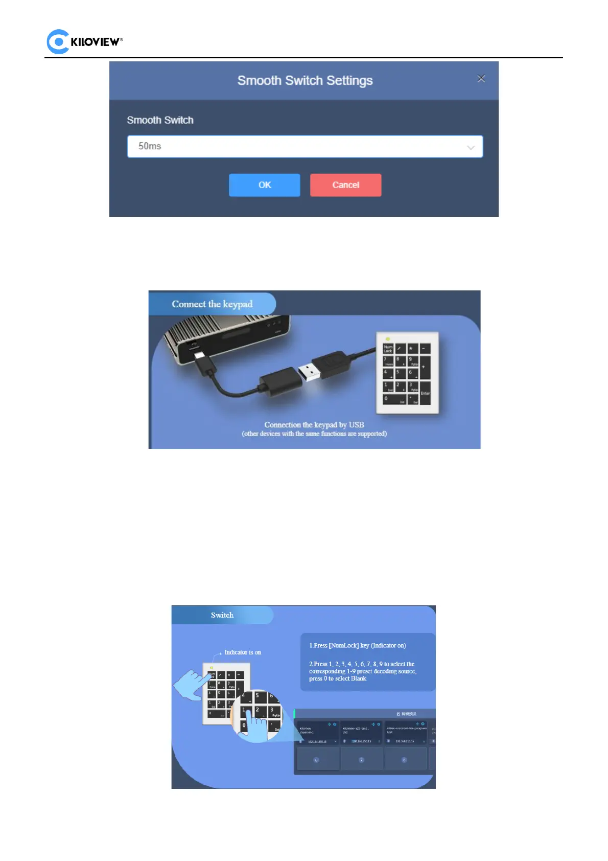 The decoding output switch can also be controlled via keypad (connect with USB), and first