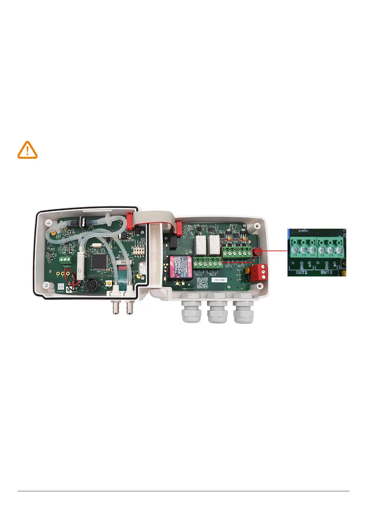 OUT1 or OUT2, indicated on the electronic board above the terminal blocks.