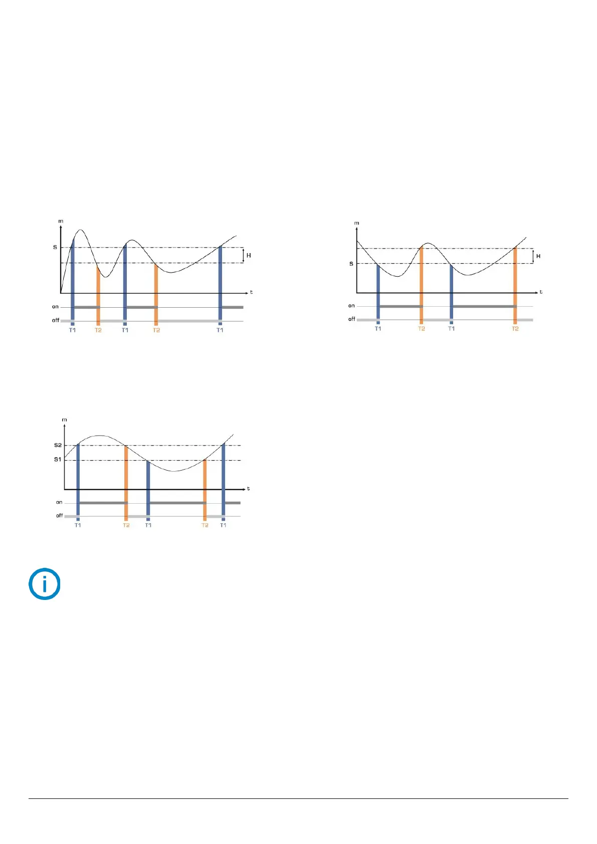 • Monitoring (2 thresholds): the relay goes off when the measurement is outside the dened low and high