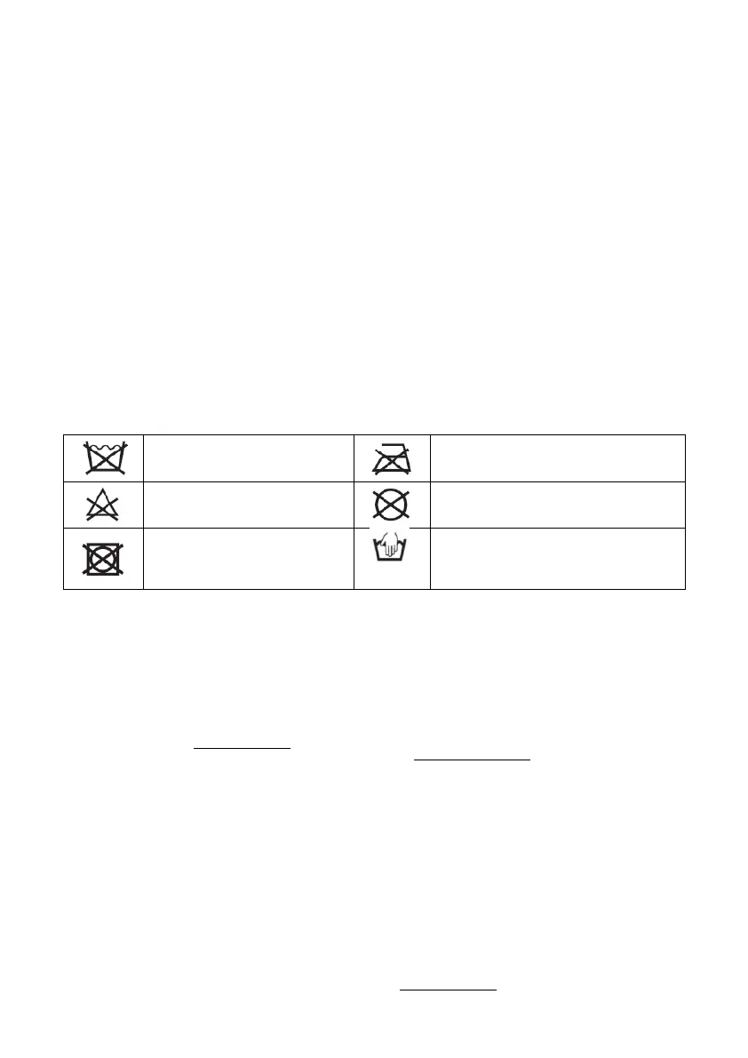 detergente delicato, non usare la candeggina, non asciugare in asciugatrice, non stirare, non lavare a secco.