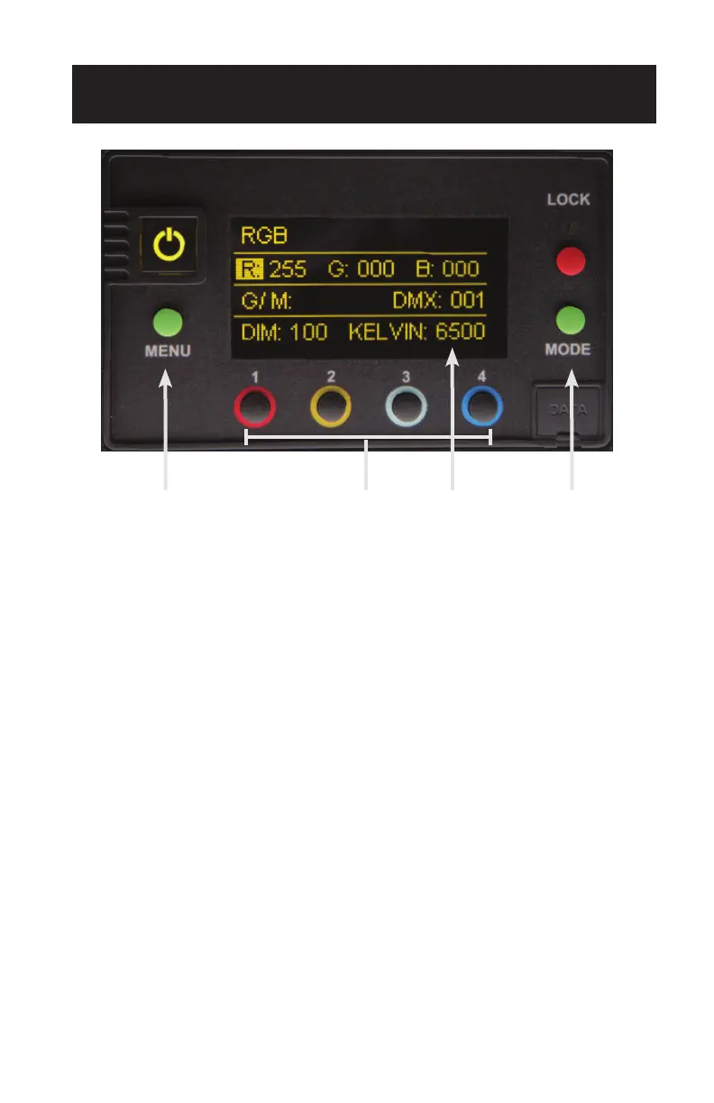 Provides access to Dim, Kelvin, G/M, RGB and DMX channel.