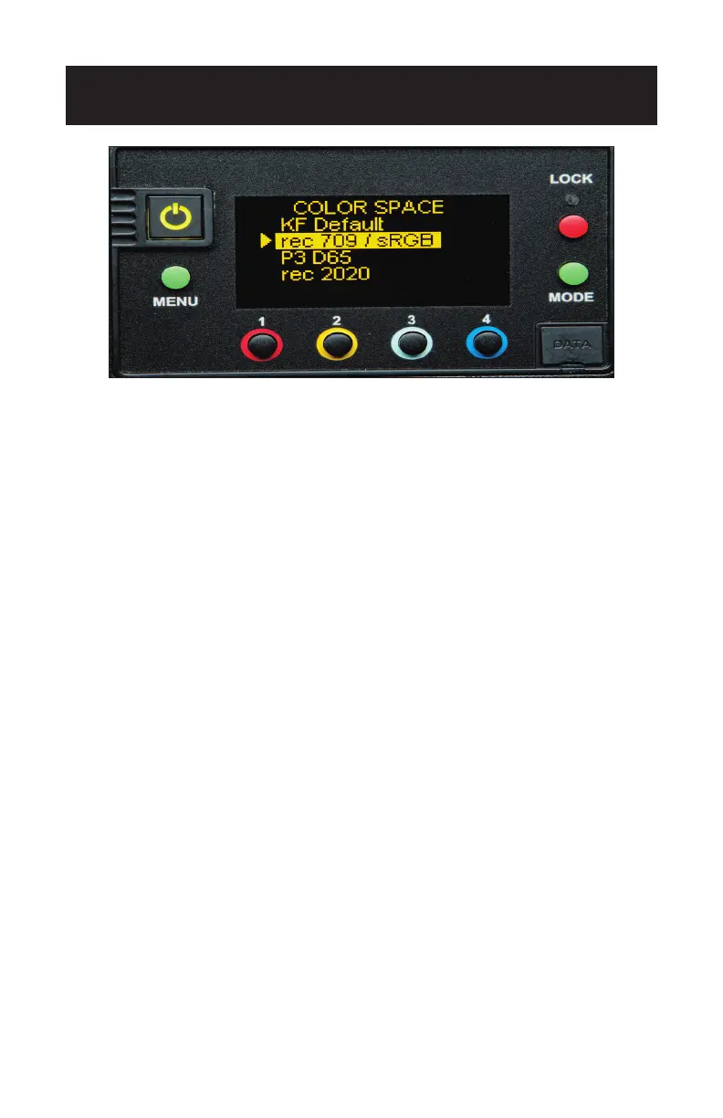displayed. Turn the control knob and press to select Color Space options: