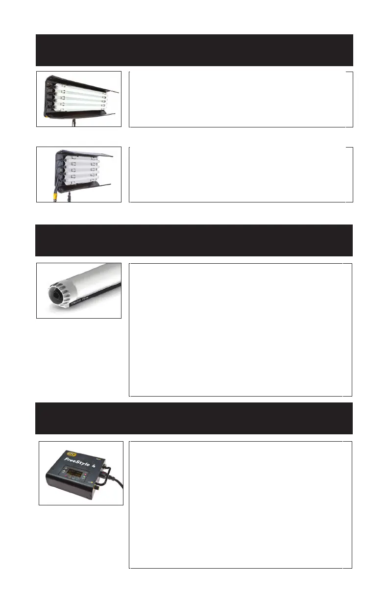 Bekijk gratis de handleiding van Kino Flo FreeStyle T24, stel vragen en lees de antwoorden op veelvoorkomende problemen, of gebruik onze assistent om sneller informatie in de handleiding te vinden of uitleg te krijgen over specifieke functies.