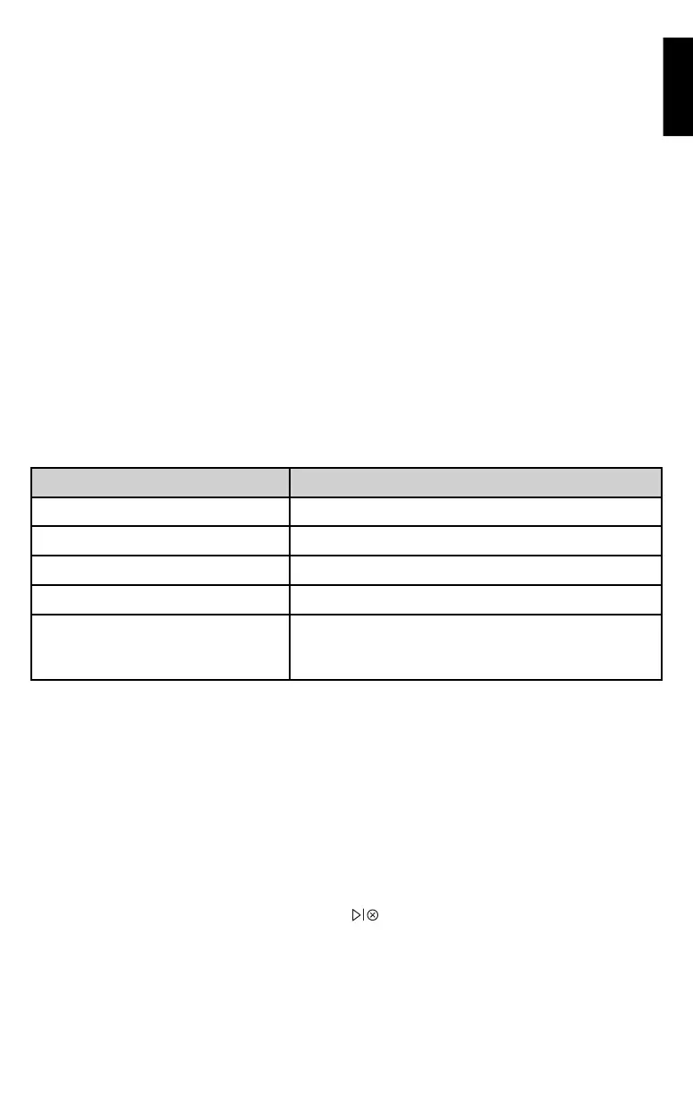 status LEDs will display for 5 seconds and then turn off. If the Battery charge is 10% or less,
