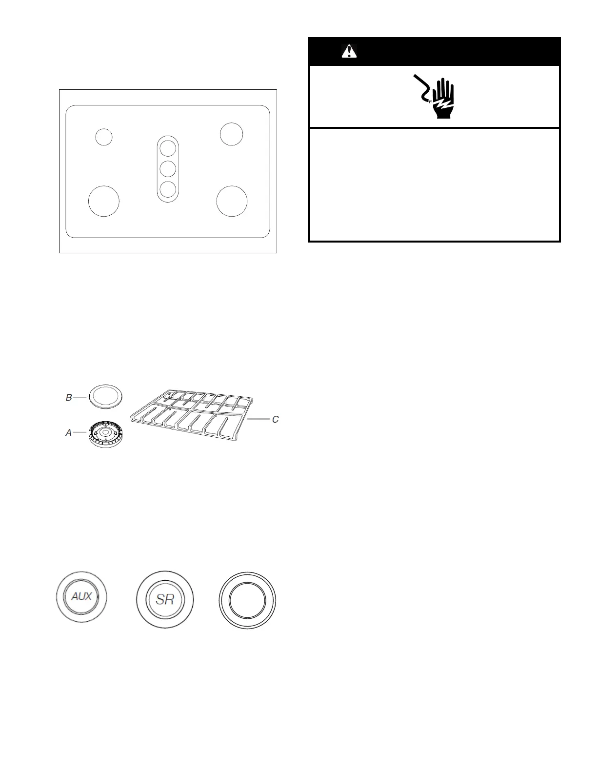 pas. Placer les grilles de brûleur sur les brûleurs et chapeaux.
