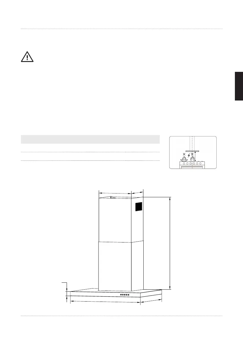 installed at a distance of 65-70 cm above the cooktop.