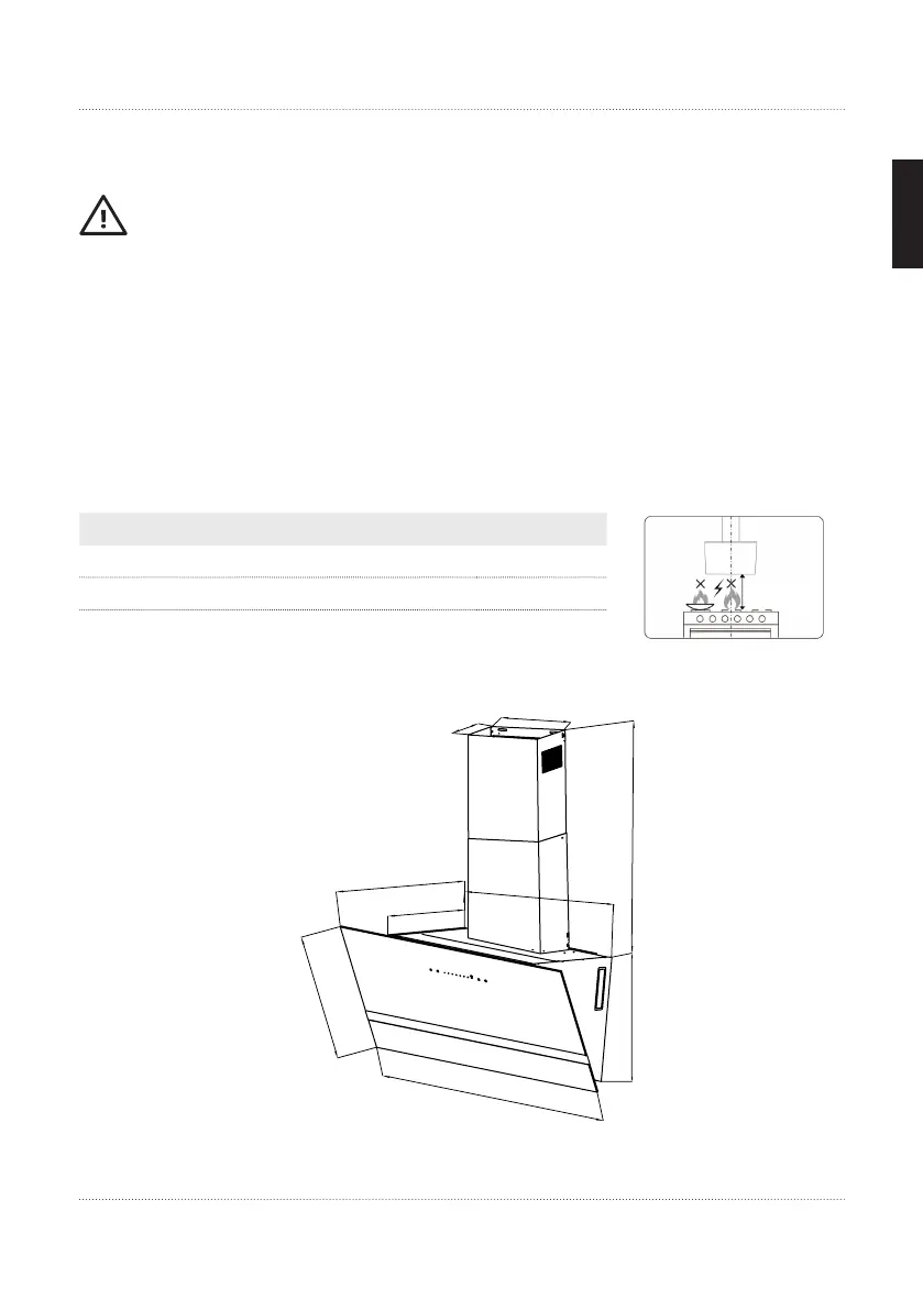 in einem Abstand von 65-70 cm über der Kochfläche angebracht werden.