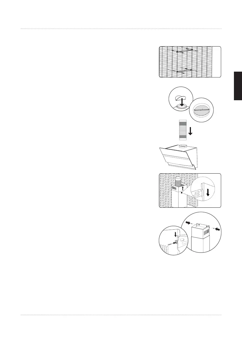 • Place the telescopic exhaust air shaft on the hood