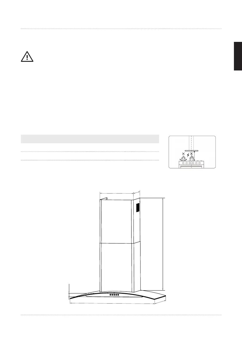 in einem Abstand von 65-70 cm über der Kochfläche angebracht werden.