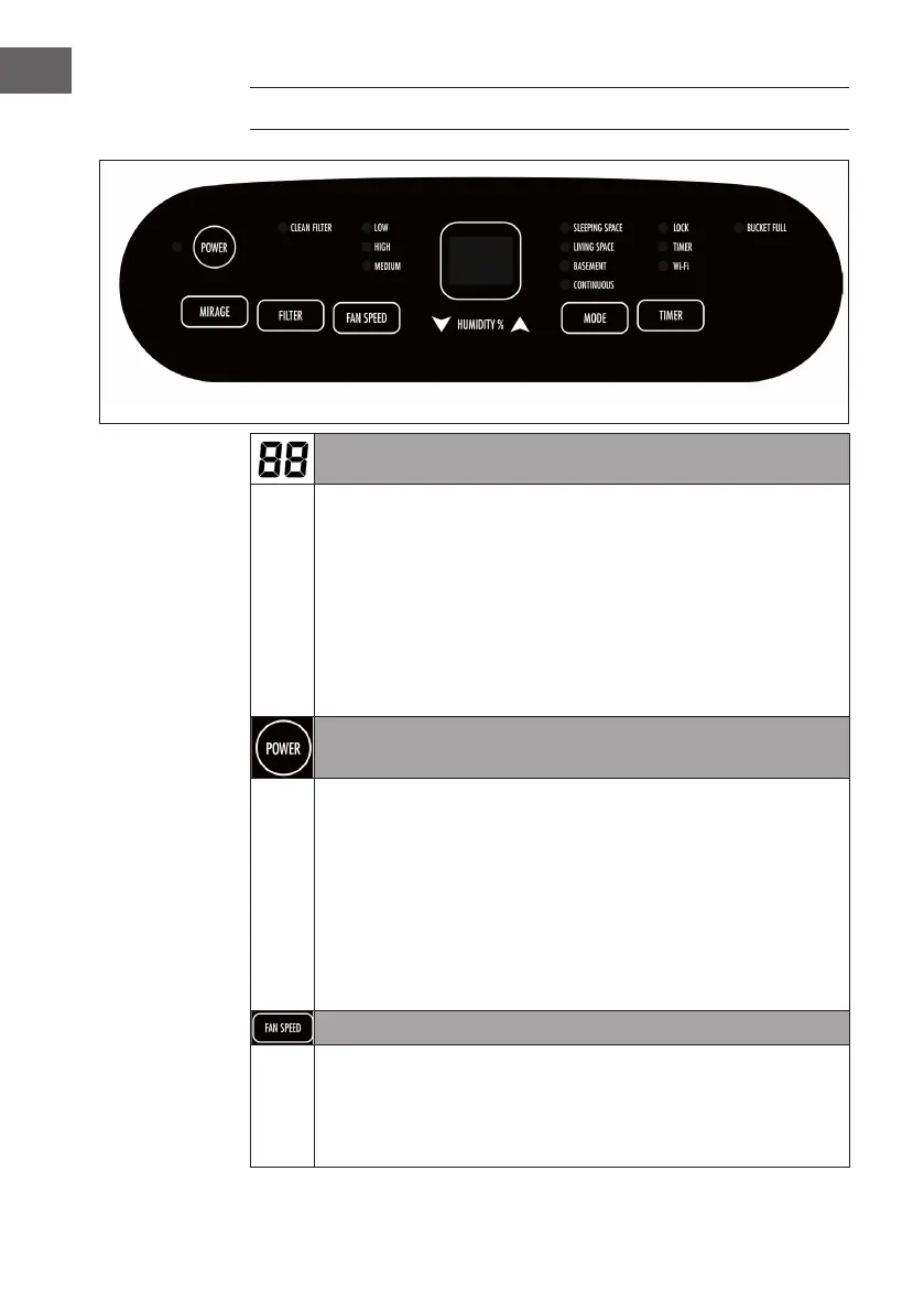 • La pantalla muestra la humedad del aire de la habitación cuando el