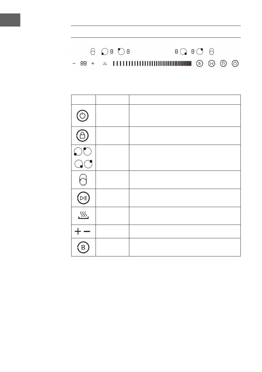 ON/OFF Zum Einschalten oder Ausschalten des Kochfelds.