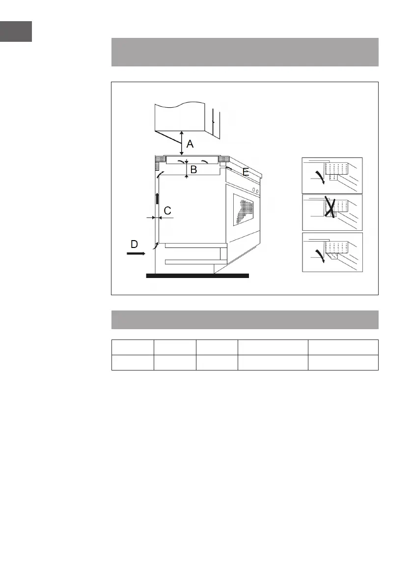 Hinweis: Der Sicherheitsabstand zwischen dem Kochfeld und dem Schrank
