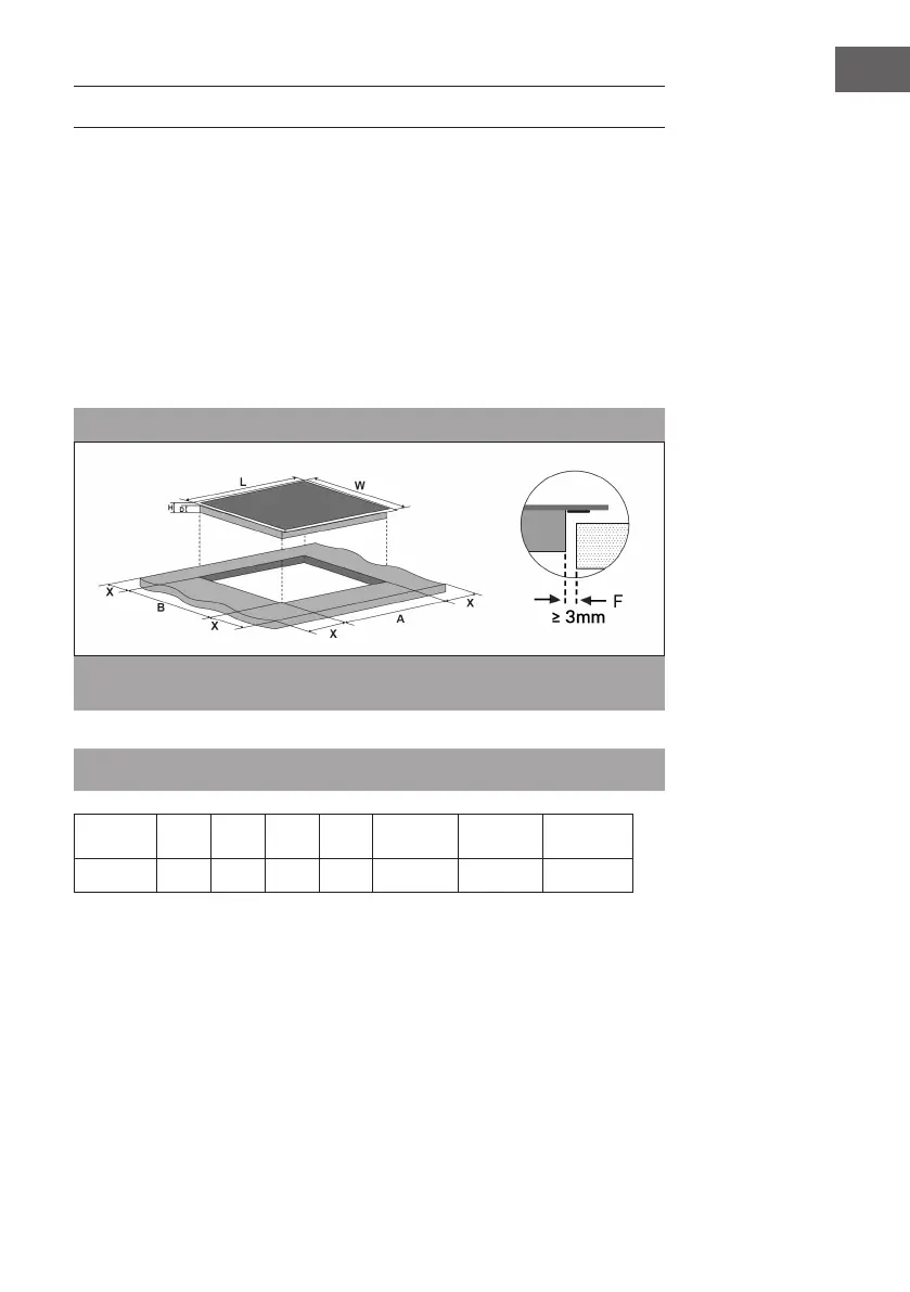 surfaces intérieures du plan de travail doit être d'au moins 3 mm.
