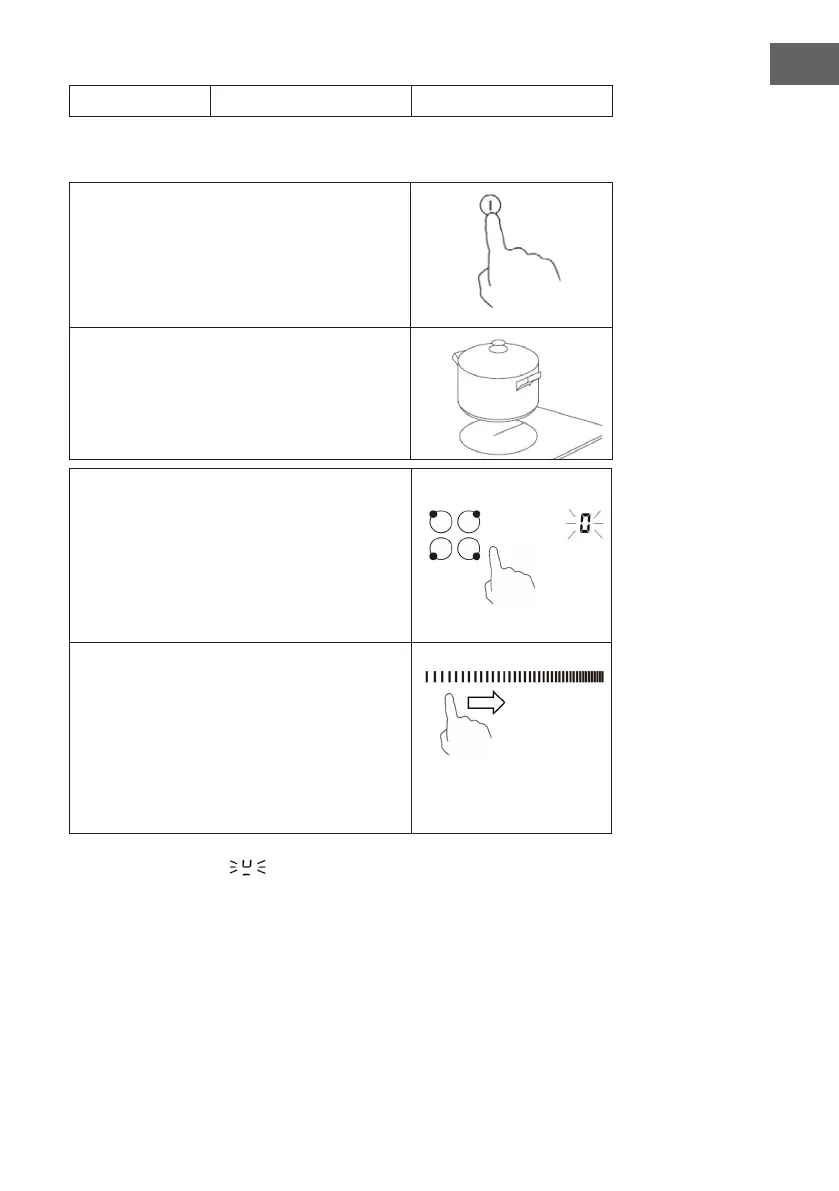 • non è stata posizionata una pentola sulla zona di cottura corretta oppure,