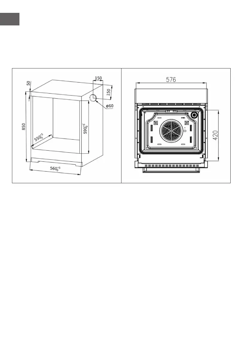 de oven geïnstalleerd worden in overeenstemming met de in de volgende afbeelding