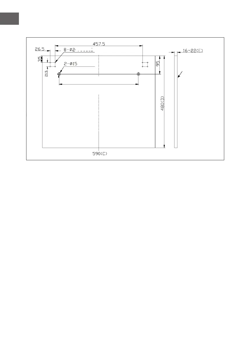 • La plage pour la dimension E se situe entre 16 et 22 mm.