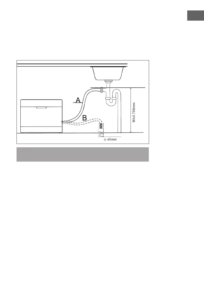 Use the supplied hose clamp for fastening. To prevent backow, the water drain pipe