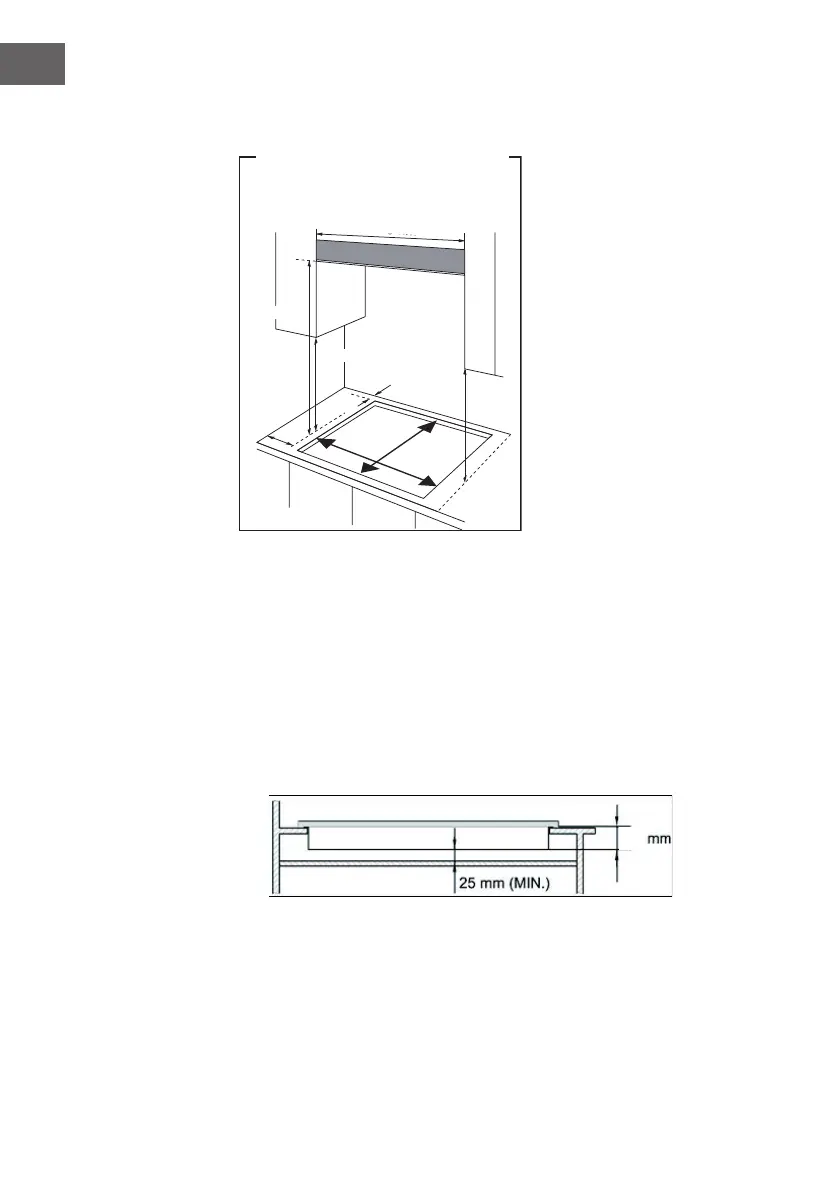 • Gasspisens kanter måste hålla ett avstånd på minst 60 mm från sido- och