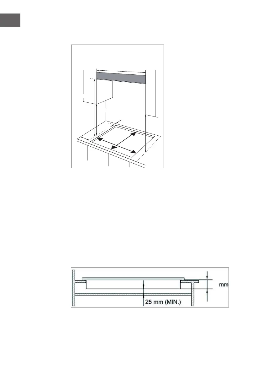 • 400 mm between the hob surfaces, providing that the underside of the horizontal