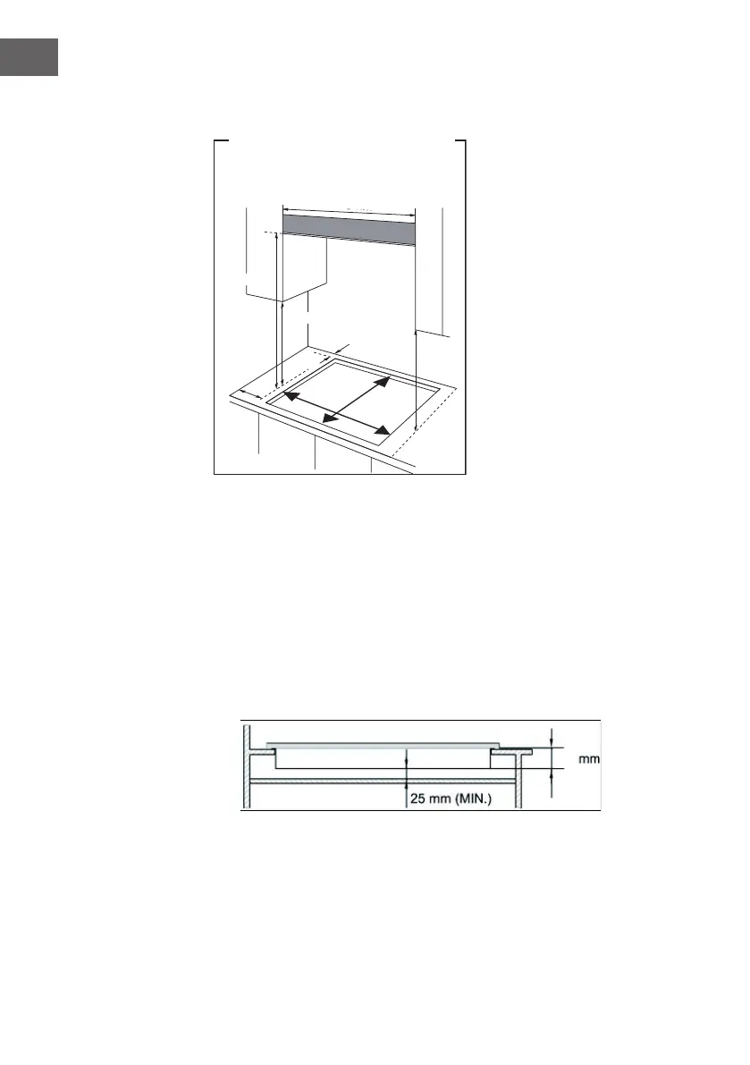 • Ci devono essere almeno 400 mm tra le superci del piano cottura, a condizione