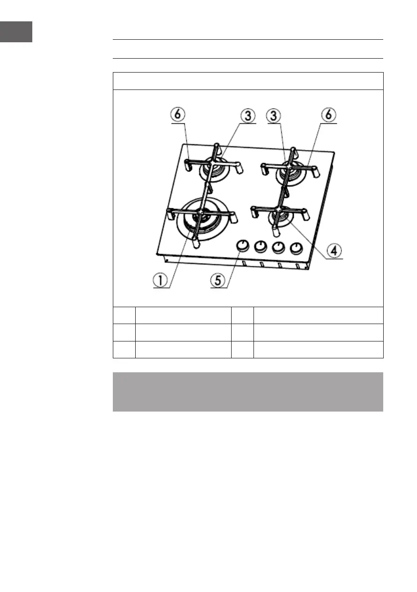 1 Wokbrenner 5 Bedienregler Gasbrenner