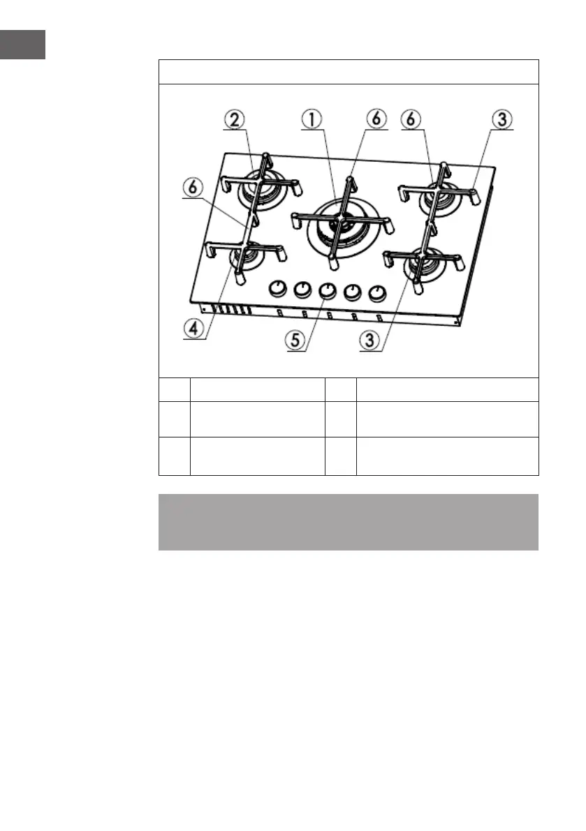 1 Quemador wok 4 Quemador auxiliar (AUX)