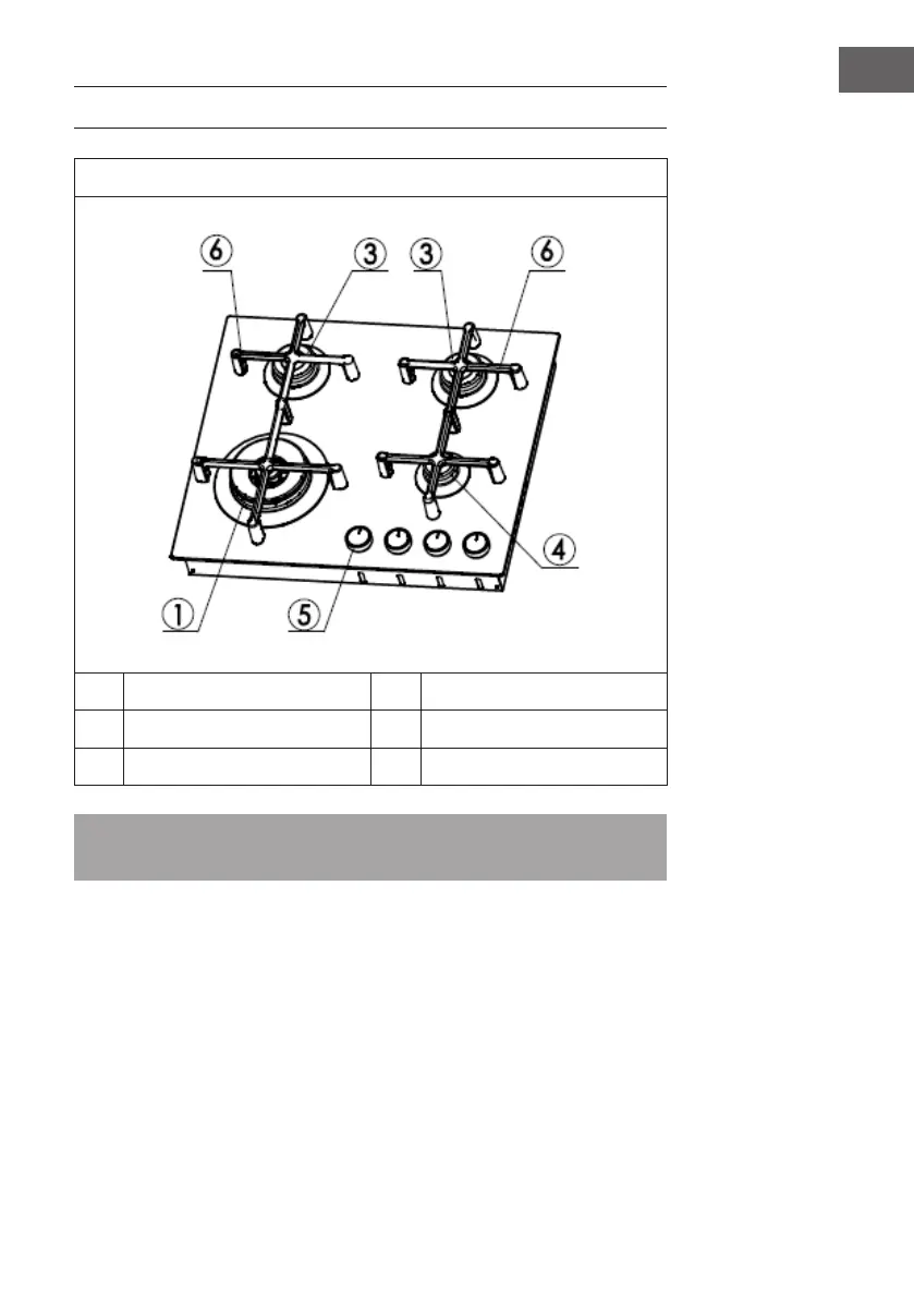 3 Semi-Rapid gas burner (SR) 6 Pan support for burners