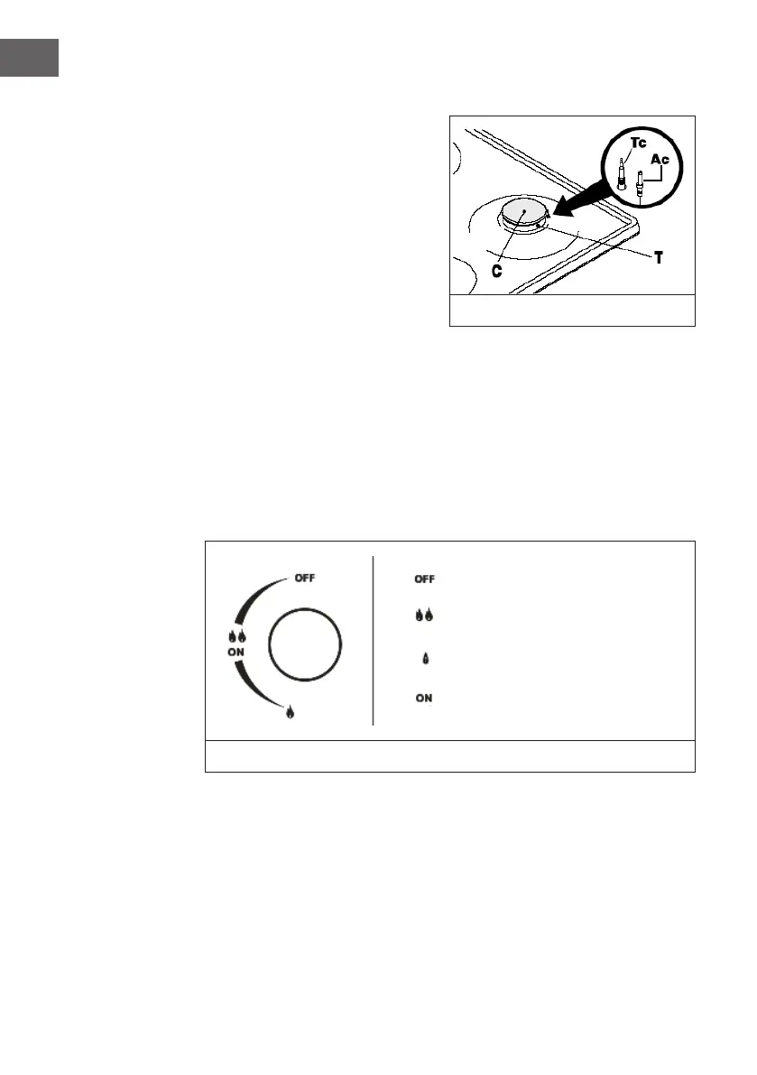Keep the knob pressed until ame ignition. Matches can be used to light the