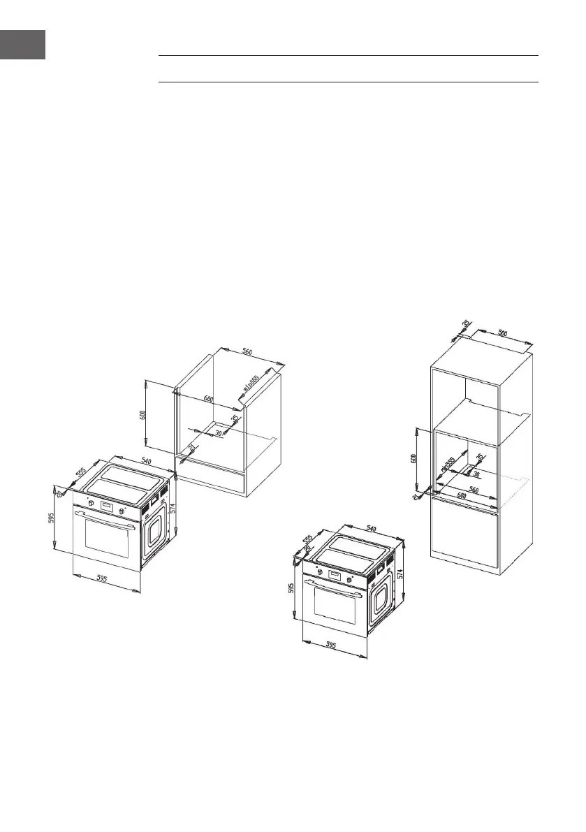 • Zwischen dem Gerät und den umliegenden Gerätefronten ist ein Abstand von 5 mm