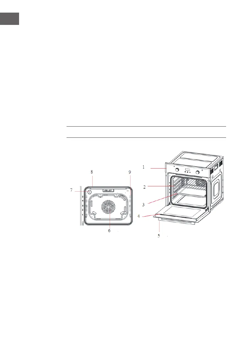 3 Bandejas de horno 8 Elemento calefactor del horno