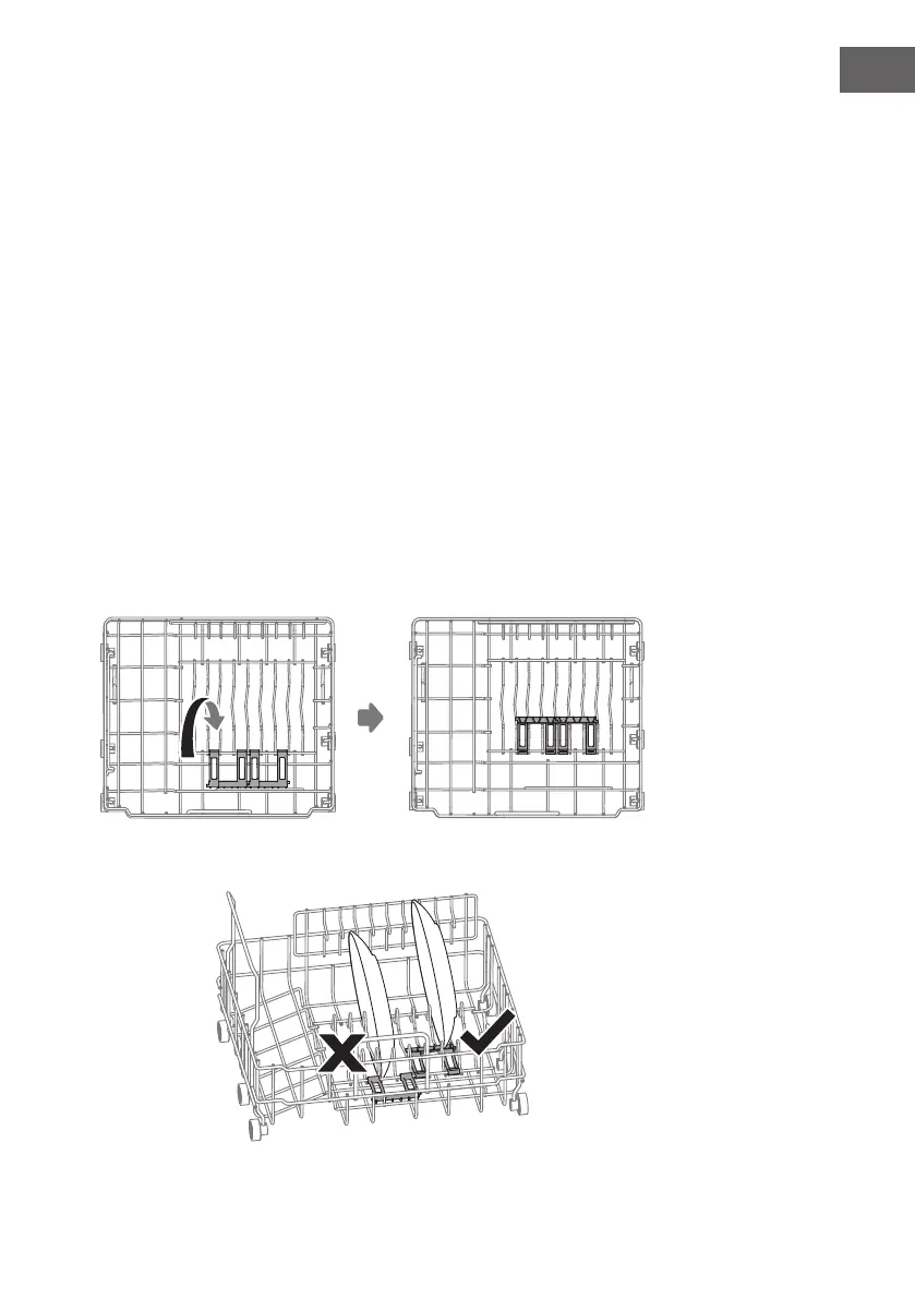 Sprüharms blockieren. Klappen Sie den Geschirrhalter nach innen, um kleines