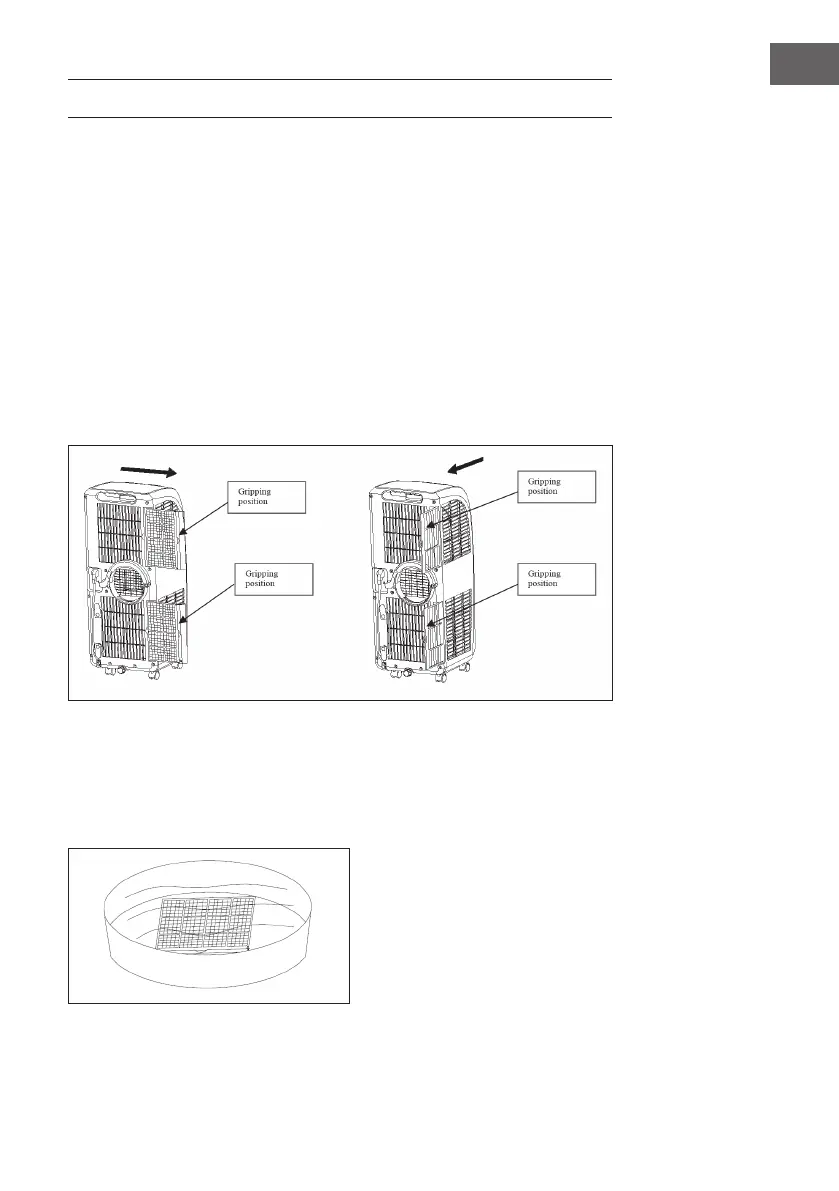 • Grip the gripping position of the evaporator lter mesh and condenser lter mesh
