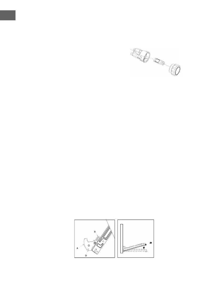 • Stecken Sie die beiden Haken "A" in die Schlitze, während die Tür senkrecht
