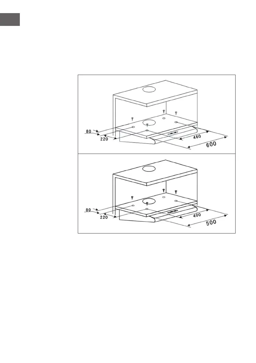 sägen/bohren Sie entsprechende Öffnungen für das Abluftrohr.