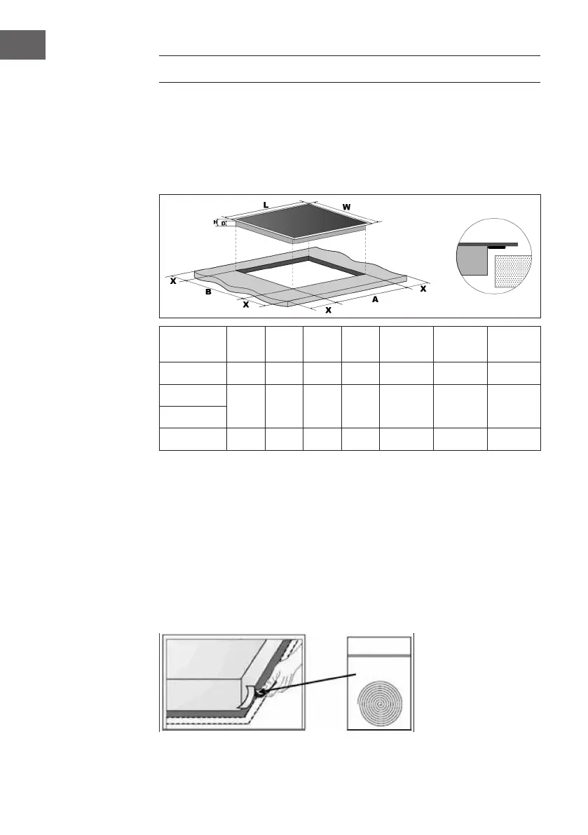 Do not install the hob without the foam gasket. The gasket should be tted to the hob as