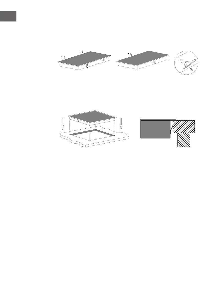 Insert the hob into the cabinet/work surface as shown below, the mounted clips on the