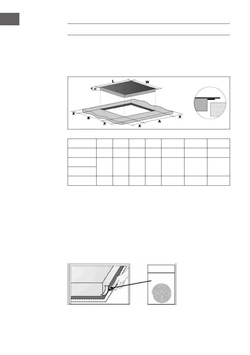 Installieren Sie das Kochfeld nicht ohne die Schaumstoffdichtung. Die Dichtung sollte wie