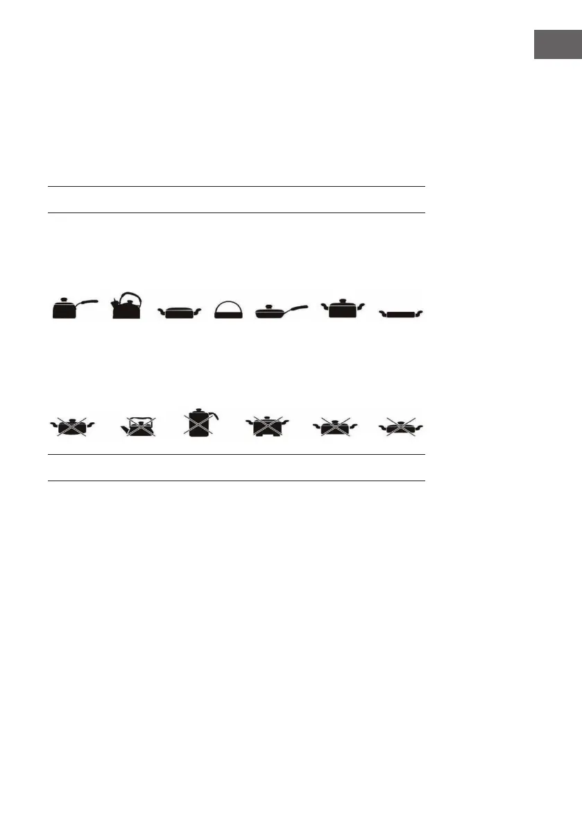 ollas y sartenes con fondo redondeado o un un diámetro inferior a 12 cm.