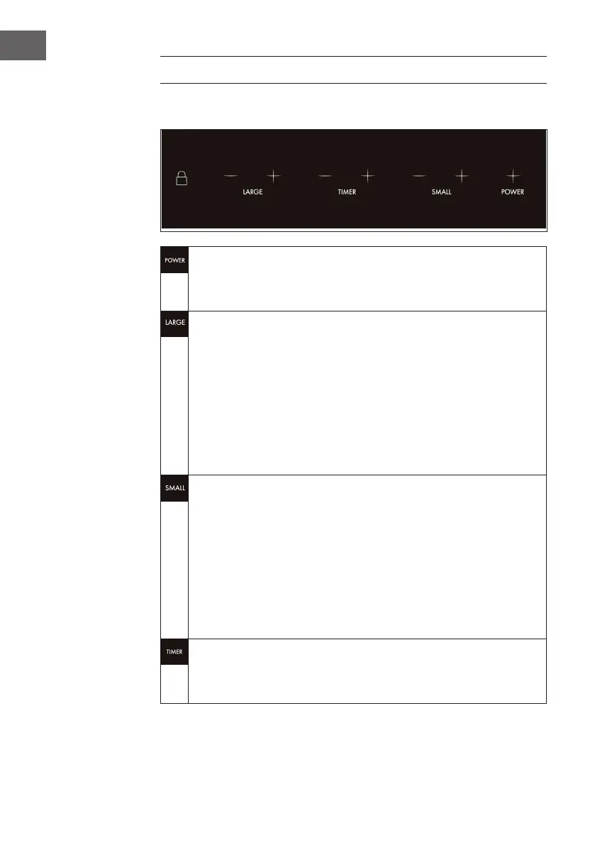 Hintere Kochplatte einstellen. Benutzen Sie die Pfeil-Tasten, um die